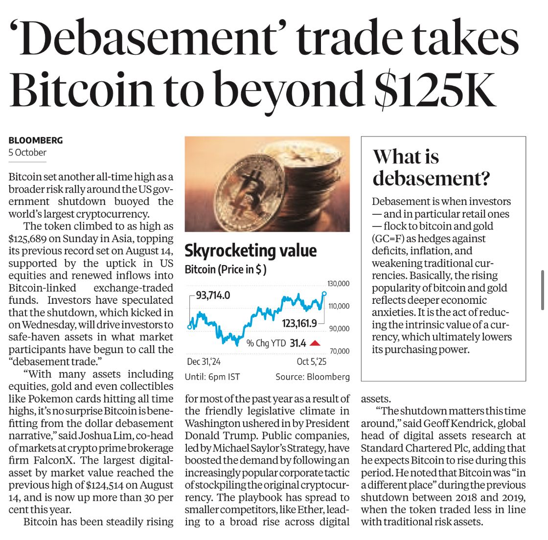 ‘Debasement’ trade takes Bitcoin to beyond Dollar 125K