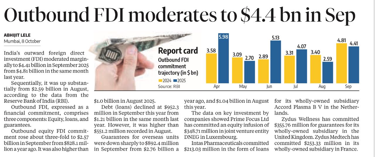 Outbound FDI moderates to dollar 4.4bn in Sep