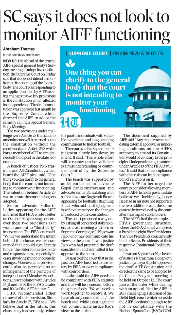 SC says it does not look to monitor AIFF functioning