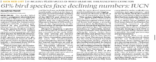 61% bird species face declining number: IUCN