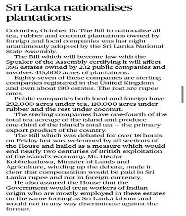 Sri Lanka nationalizes plantations