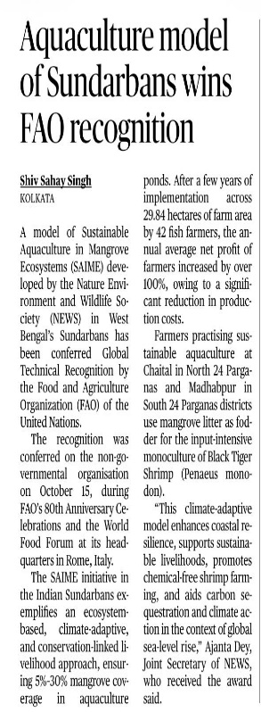 Aquaculture model of Sundarbans wins FAO recognition