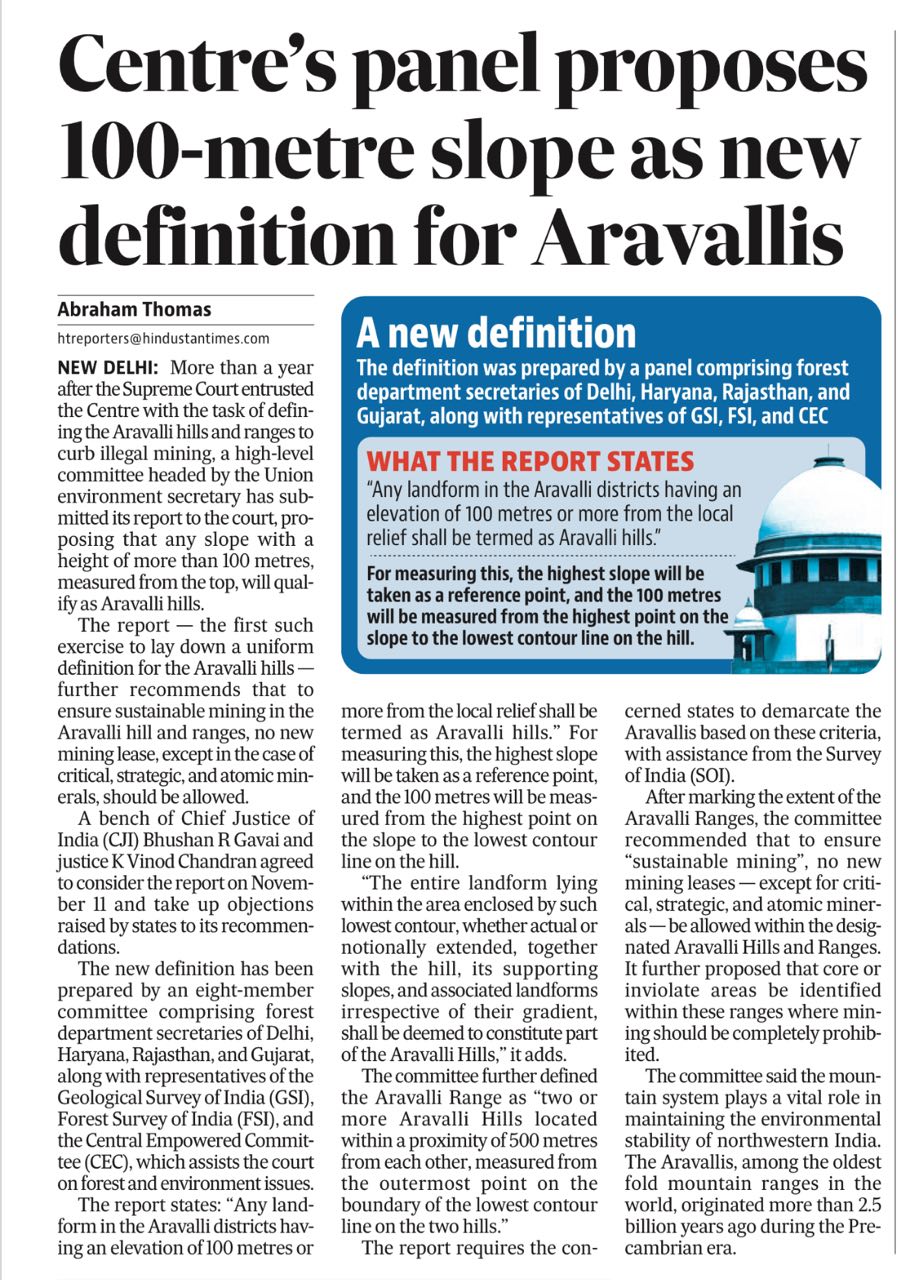 Centre’s panel proposes 100-metre slope as new definition for Aravallis