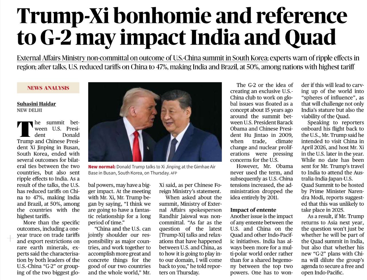 Trump-Xi bonhomie and reference to G-2 may impact India and Quad