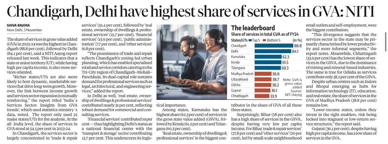 Chandigarh, Delhi have highest share of services in GVA: NITI