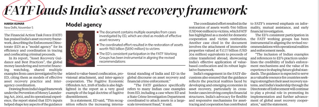 FATF lauds India’s asset recovery framework