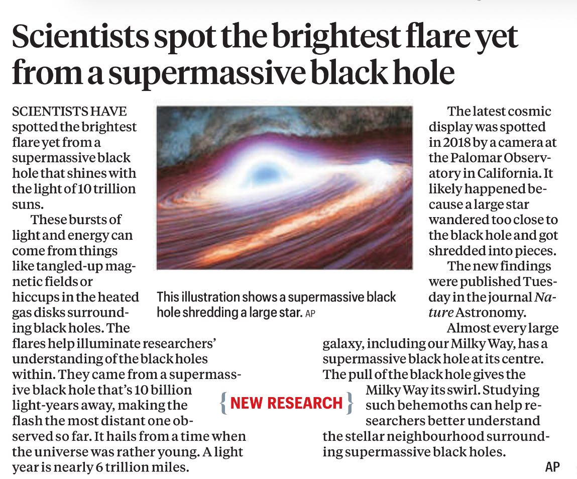 Scientists spot the brightest flare yet from a supermassive black hole
