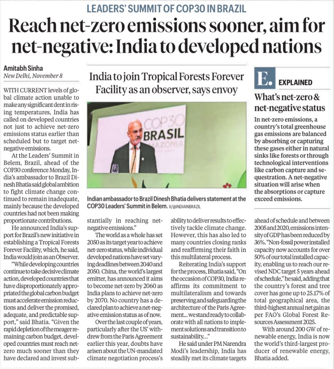 Reach net-zero emission sooner, aim for net-negative: India to developed nations