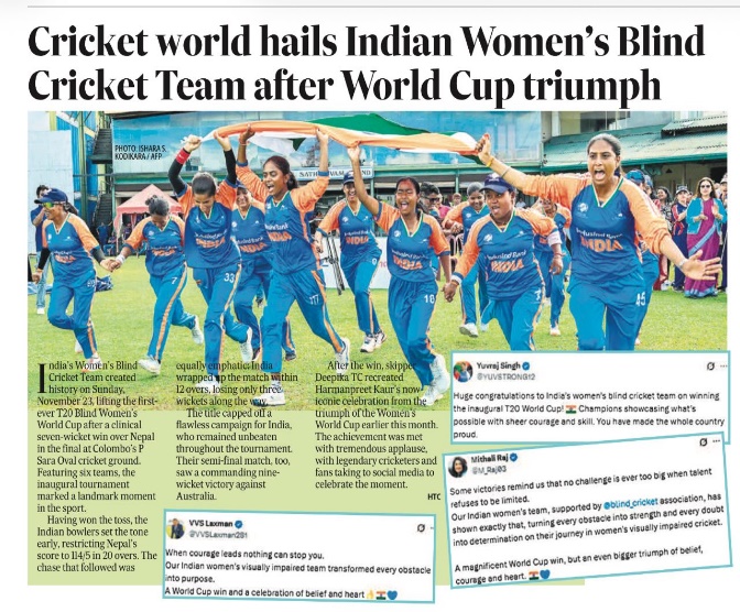 Cricket world hails Indian Women’s Blind Cricket Team after World Cup triumph