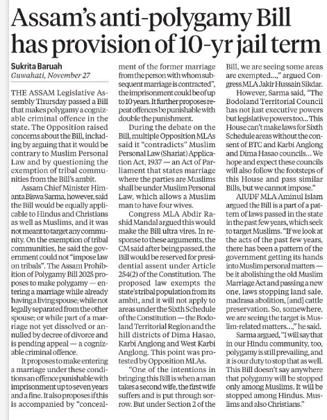 Assam’s anti-polygamy Bill has provision of 10 –yr jail term
