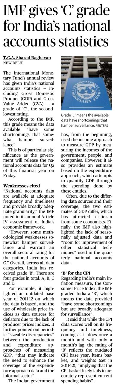 IMF gives ‘C’ grade for India’s national accounts statistics