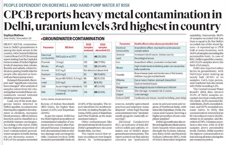 CPCB report heavy metal contamination in Delhi, uranium levels 3rd highest in country