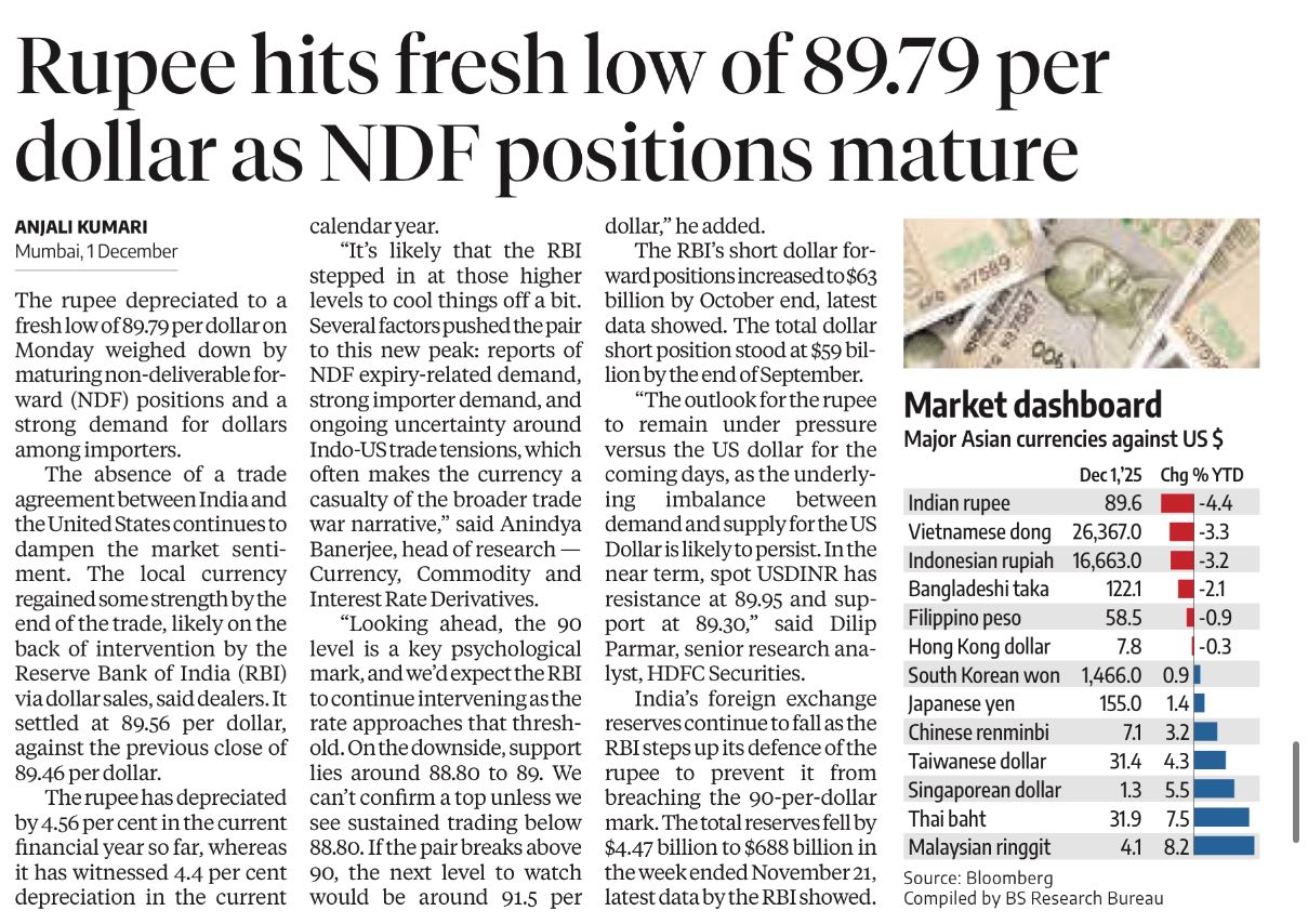 Rupee hits fresh low of 89.97 per dollar as NDF positions mature