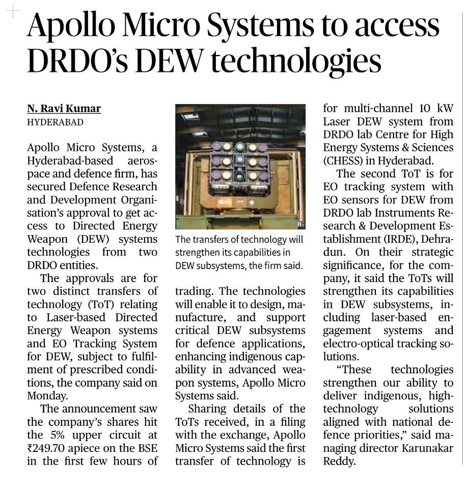 Apollo Micro Systems to access DRDO’s DEW technologies