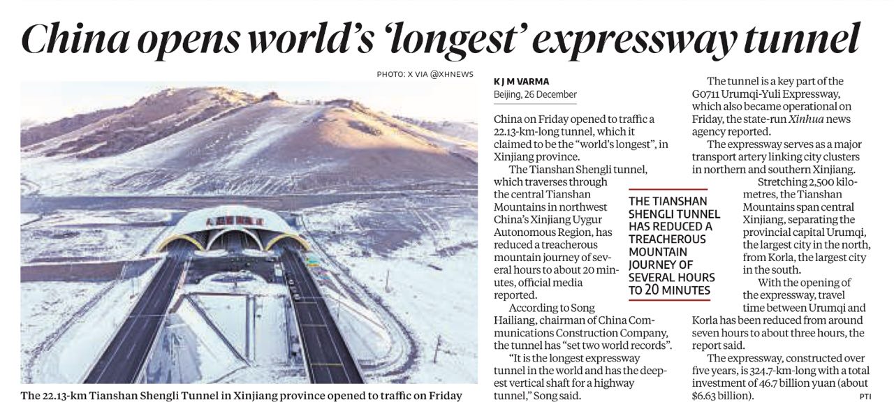 China opens world’s ‘longest expressway tunnel