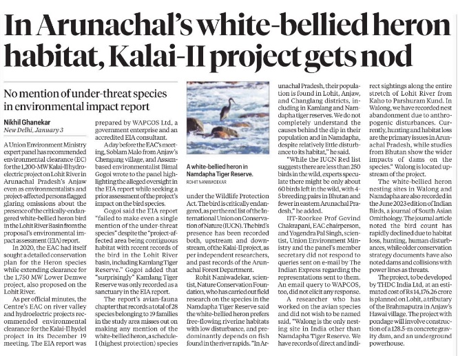 In Arunachal’s white-bellied heron habitat, Kalai-II project gets nod