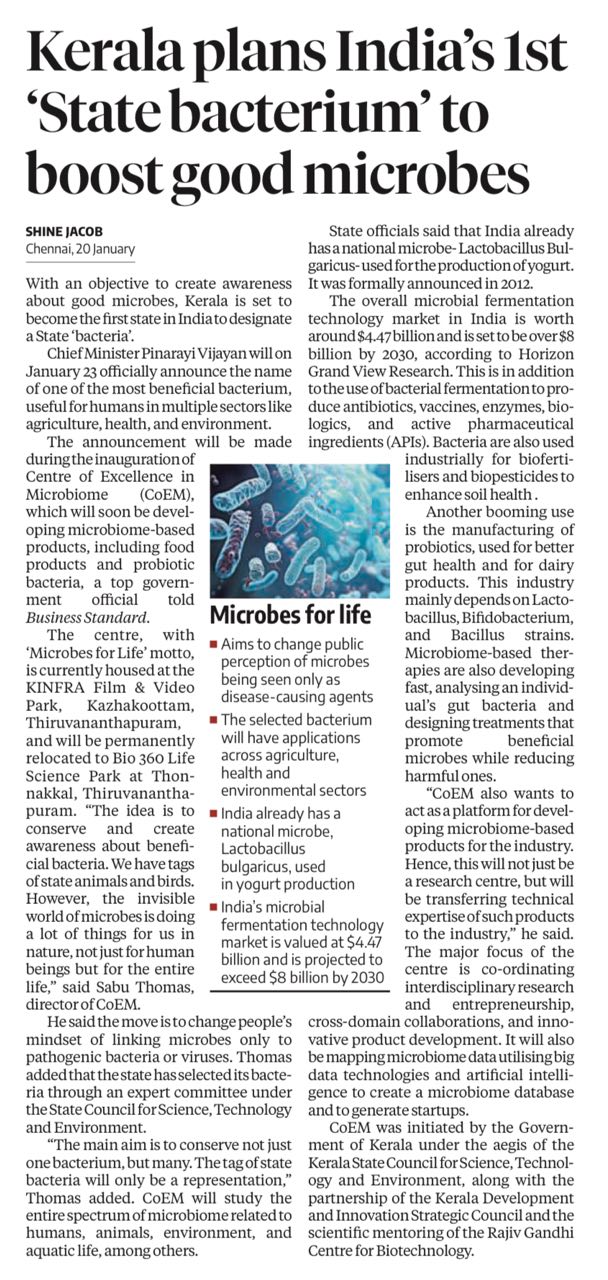 Kerala plans India’s 1st ‘state bacterium’ to boost good microbes