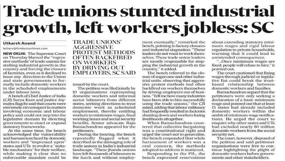 Trade unions stunted industrial growth, left workers jobless: SC