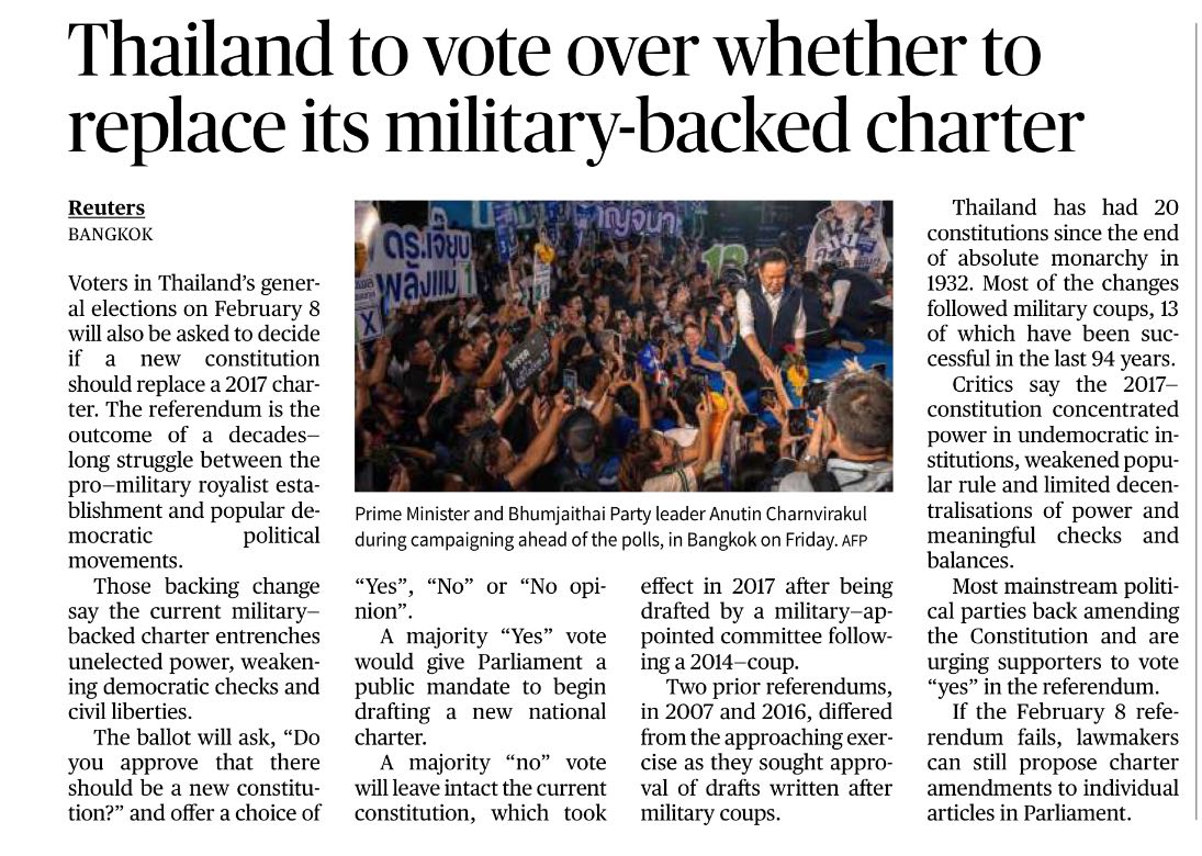 Thailand to vote over whether to replace its military-backed charter