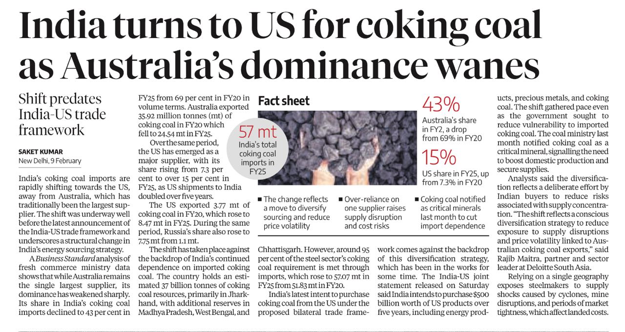 India turns to US for coking coal as Australia’s dominance wanes