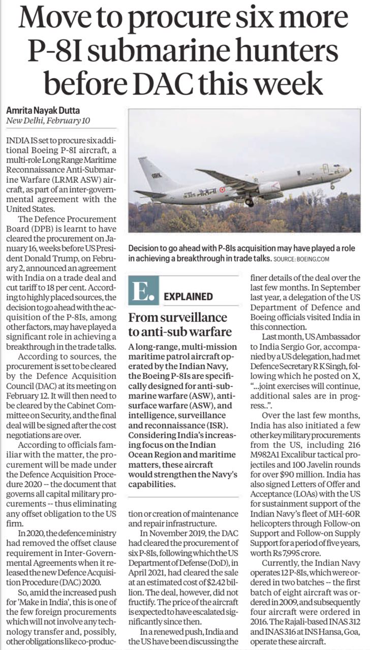 Move to procure six more P-8I submarine hunters before DAC this week