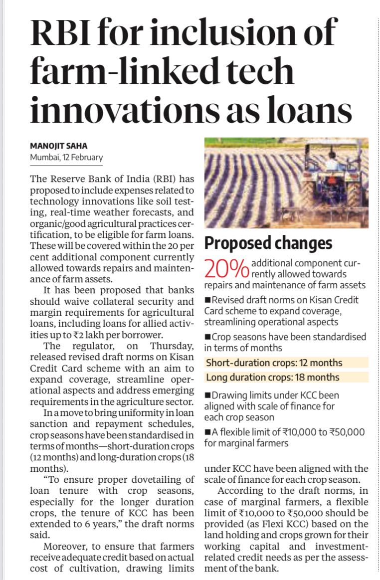 RBI for inclusion of farm-linked tech innovations as loans