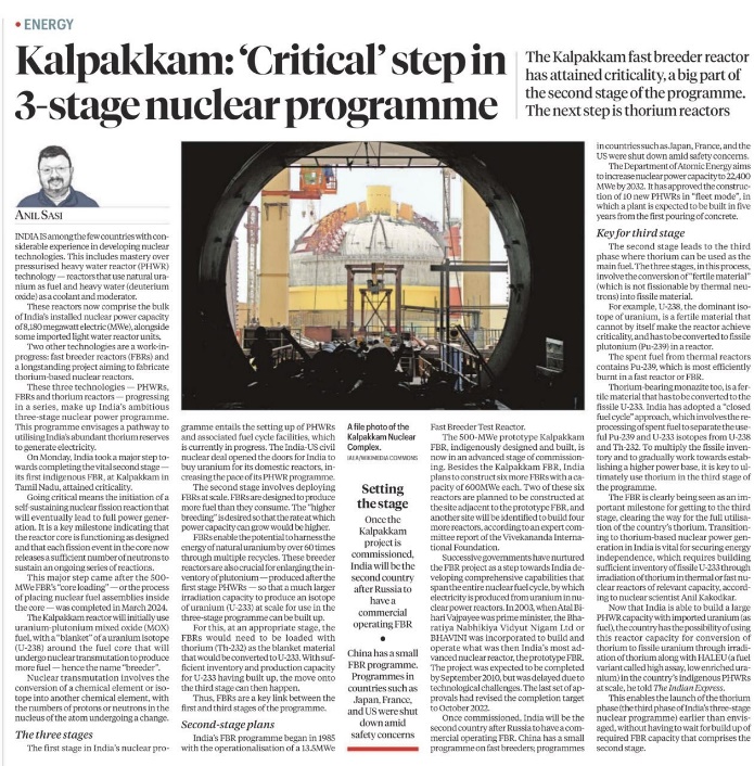 Kalpakkam:’critical’ step in 3-stage nuclear Programme